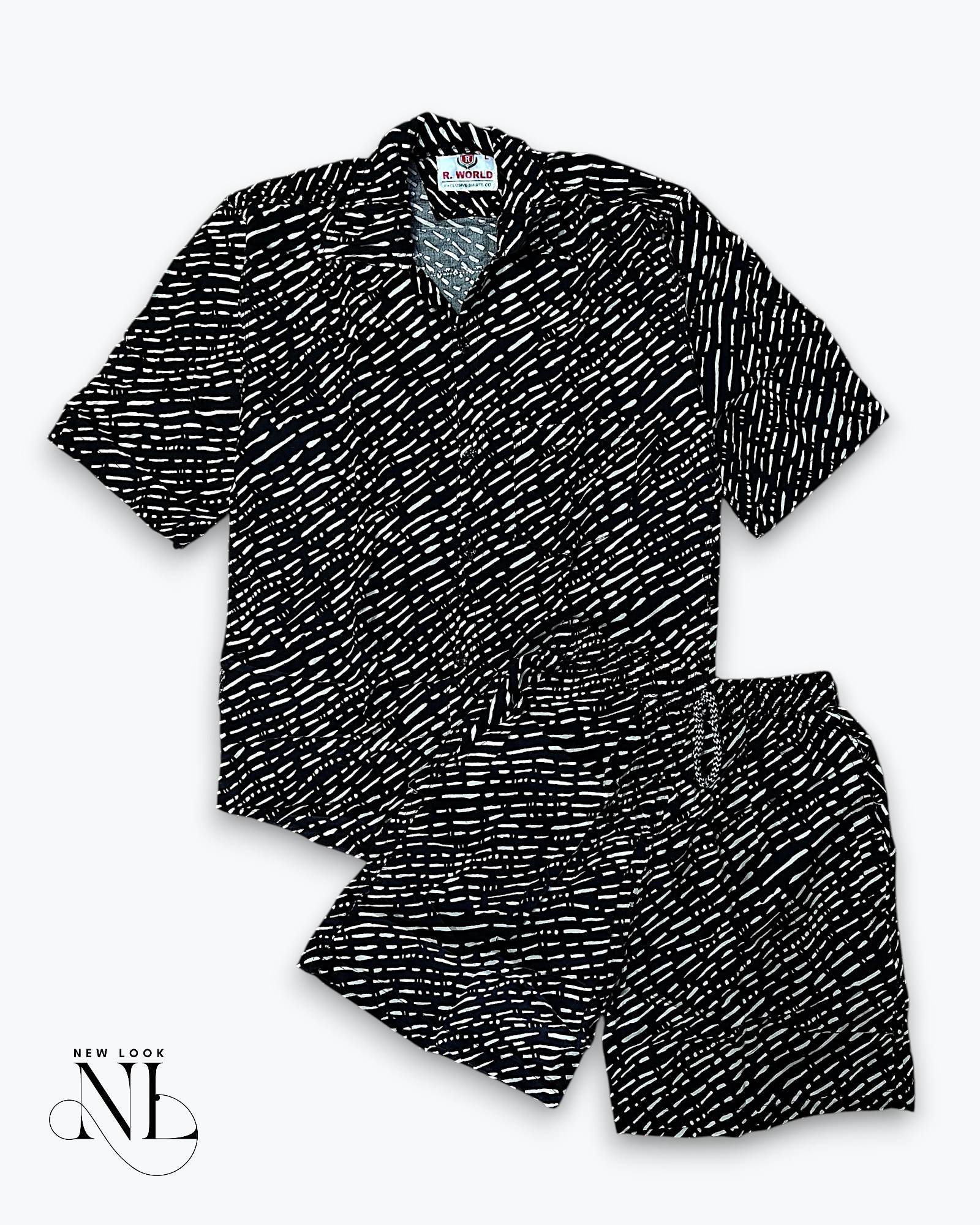 Black Printed Cord Co-ord Set for Men