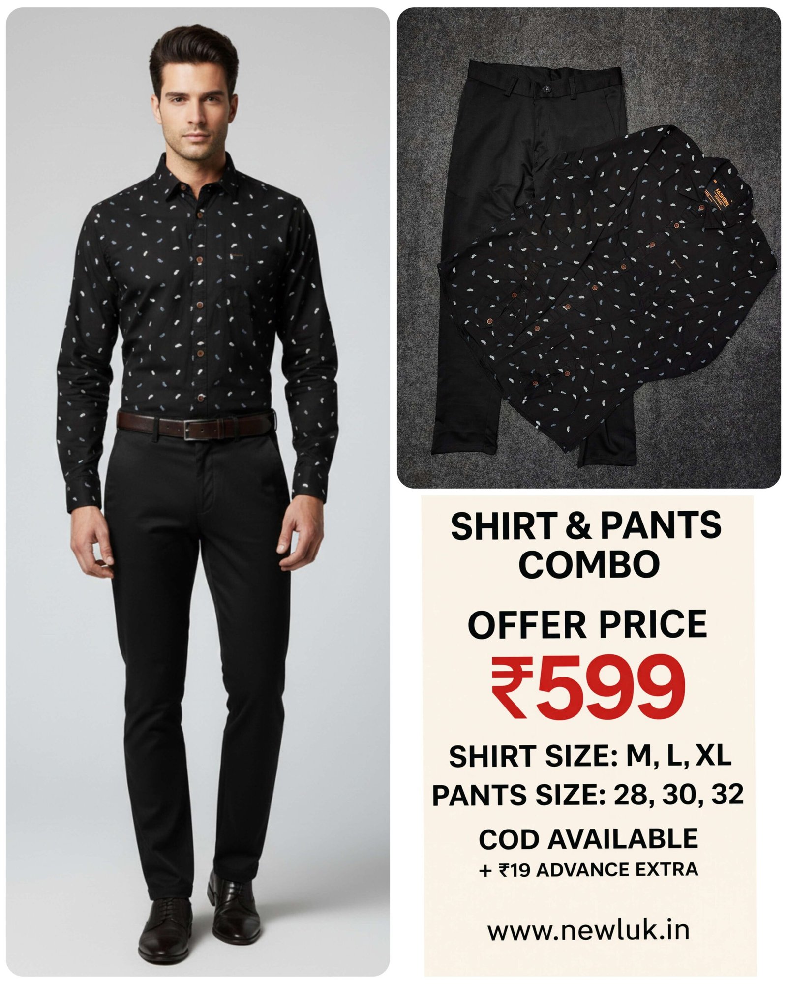 In the world of men’s fashion, few choices are as universally respected and eternally stylish as the classic black formal ensemble. Our Black Pant & Shirt Combo Set isn’t just clothing—it’s a statement of professionalism, sophistication, and impeccable taste. Designed specifically for the discerning Indian gentleman, this set represents the perfect harmony between traditional elegance and contemporary comfort, all offered at the remarkable price of just ₹599. Classic Black Printed Shirt Black Pant Combo Set & Formal Wear,
