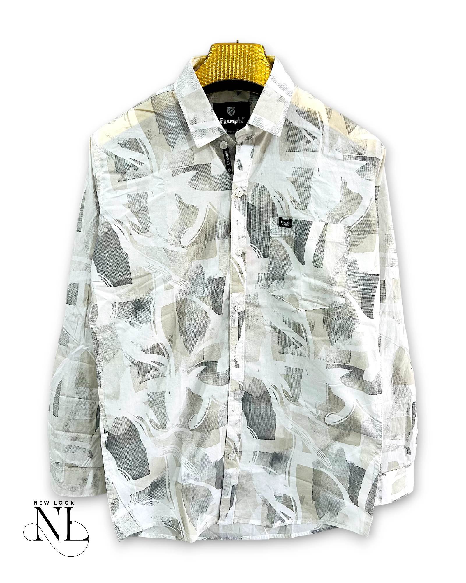 Casual Printed Grey Full Shirt for Men Formal & Stylish