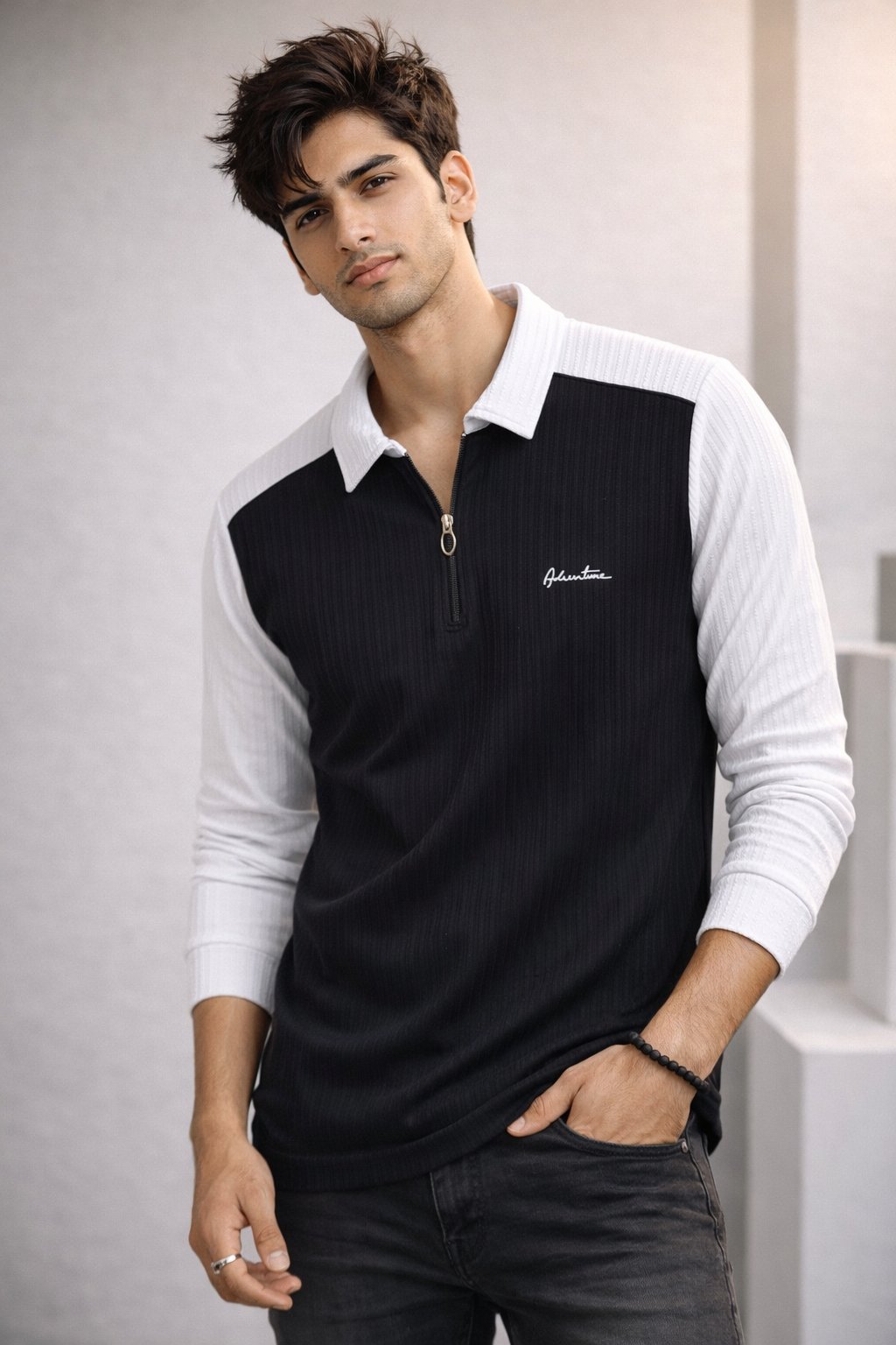 • “Men’s fashion zip-up tee”