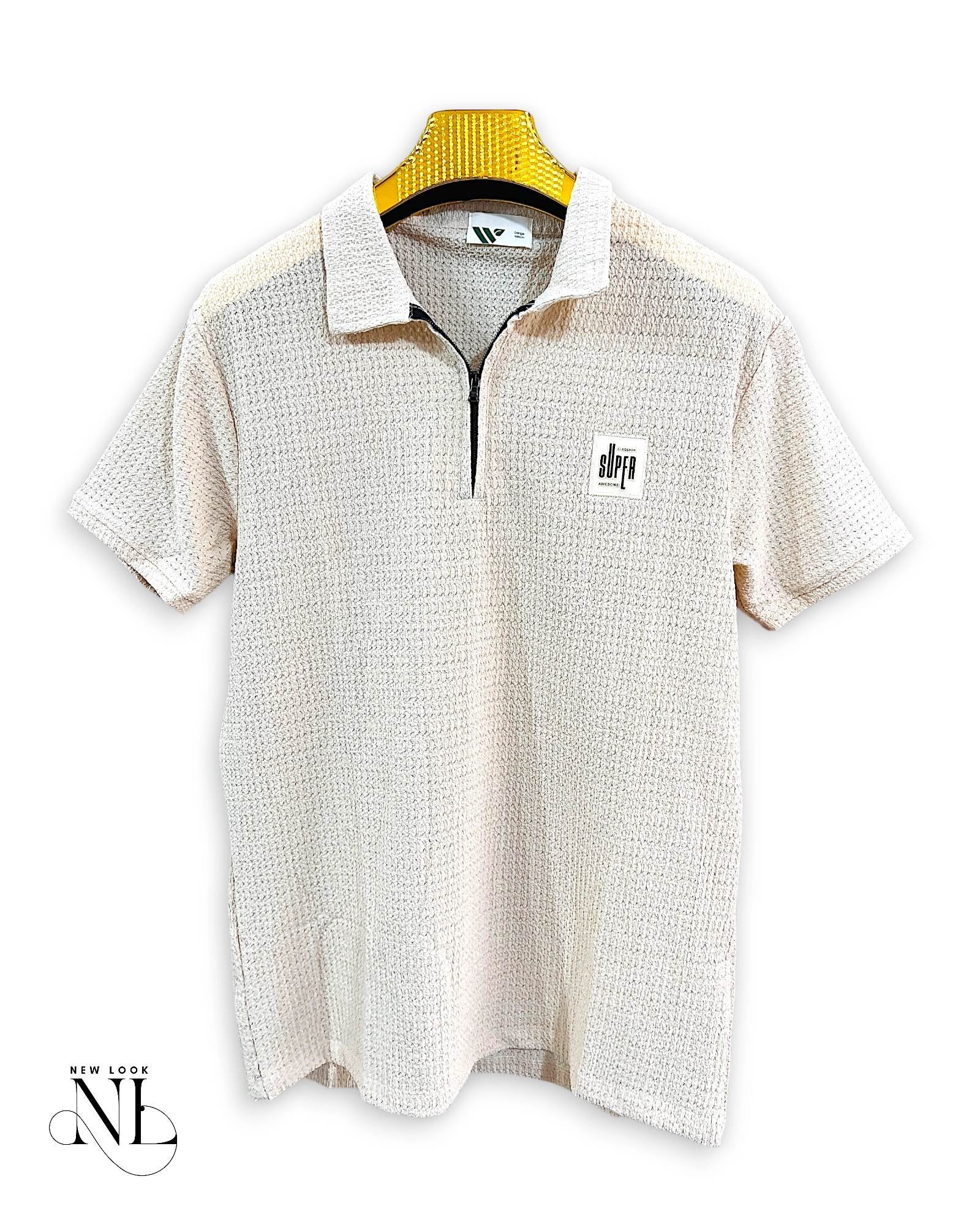 • plain Cream half polo tshirt for men