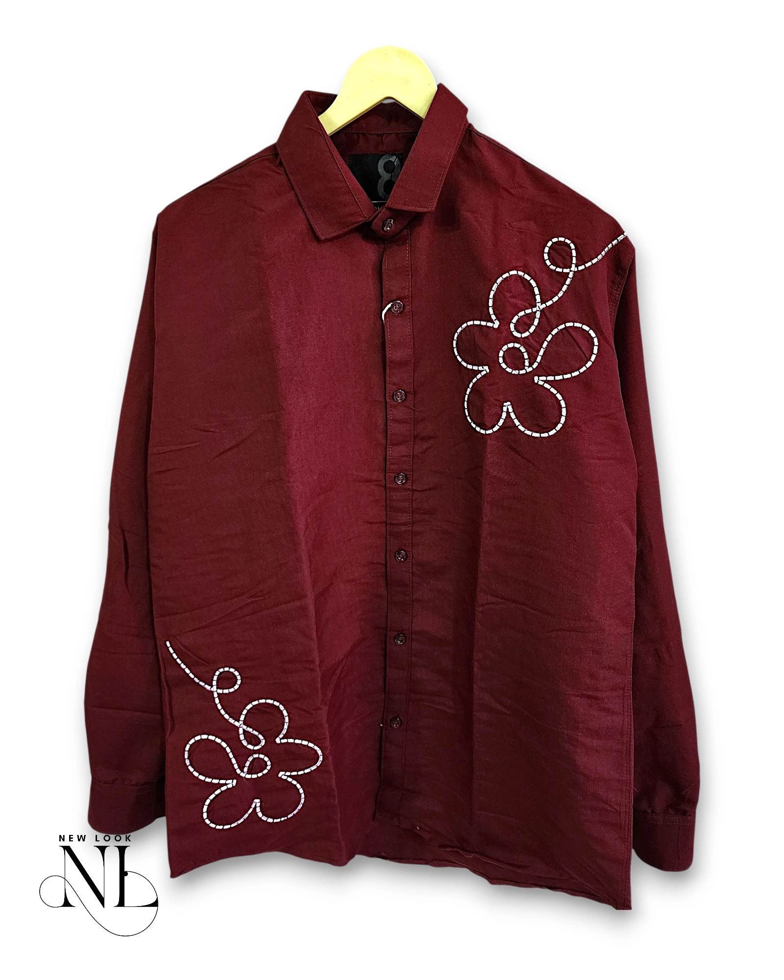 “fashionable maroon printed shirt”