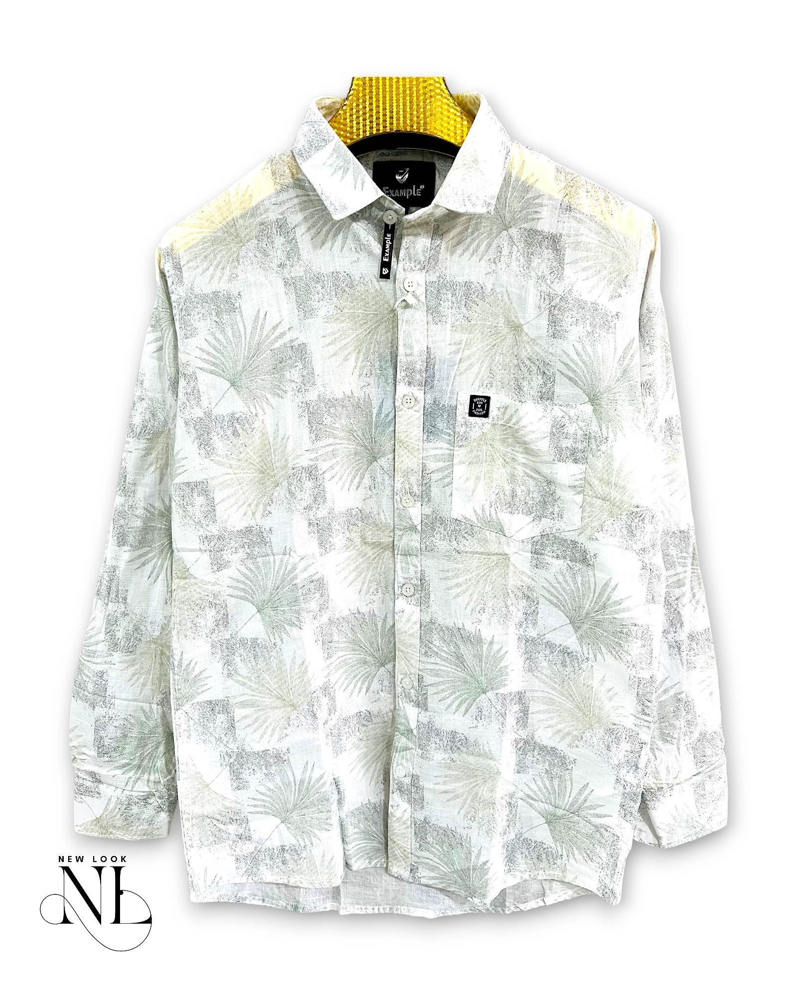 • Premium cotton white printed full shirt