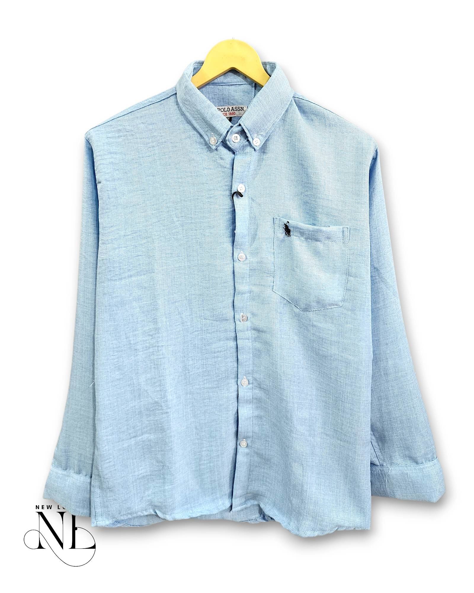 Classic Plain Linen Sky Blue Full Shirt for Men – Summer Shirt