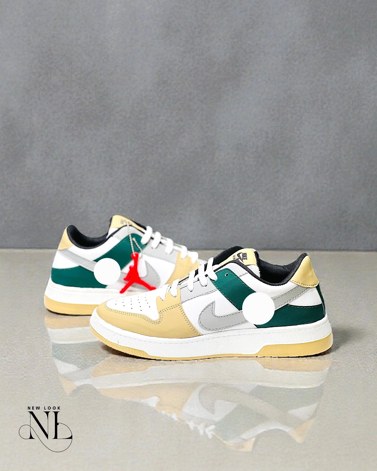 - “Stylish cream athletic shoes”