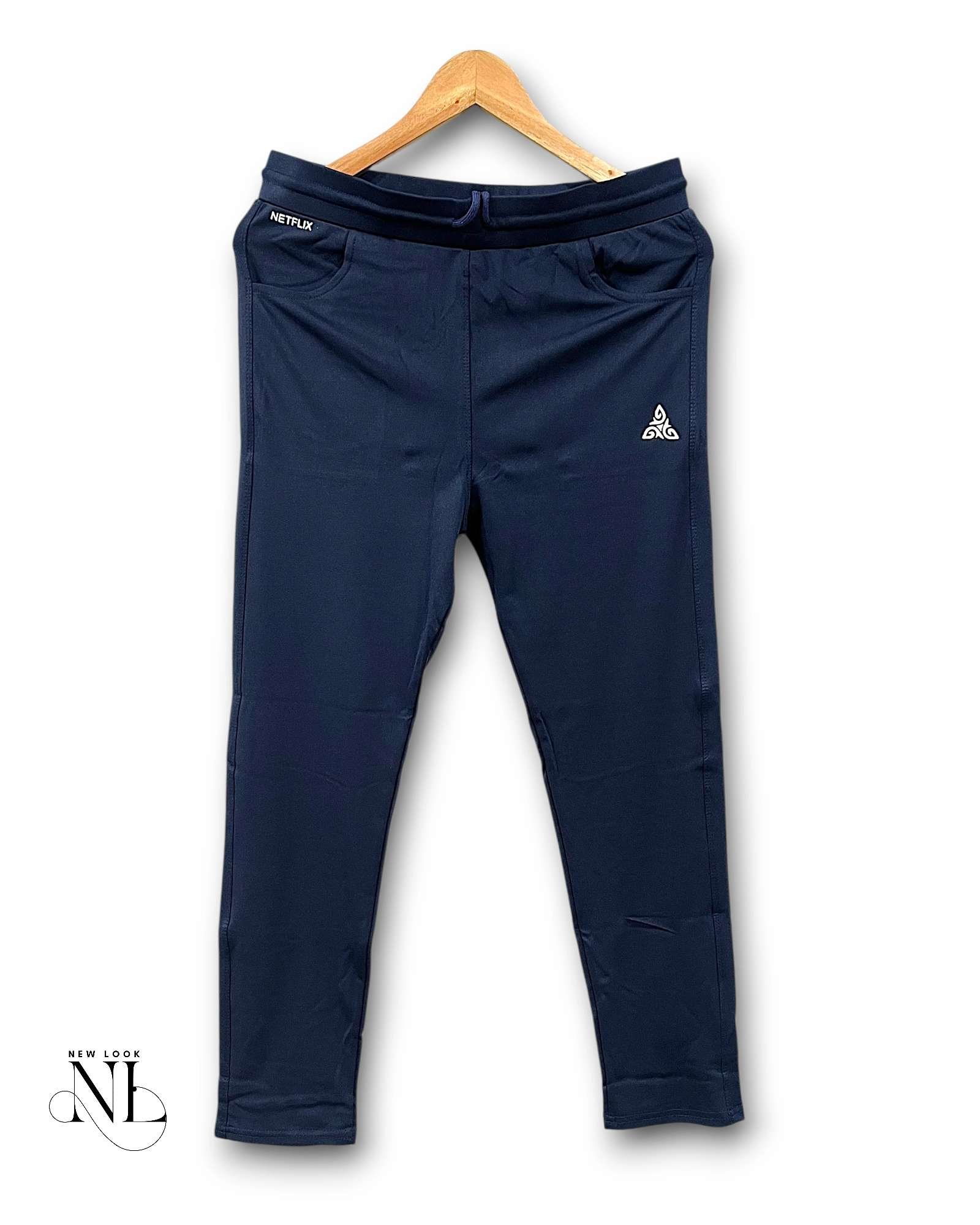 “Navy blue lycra track pants for men”