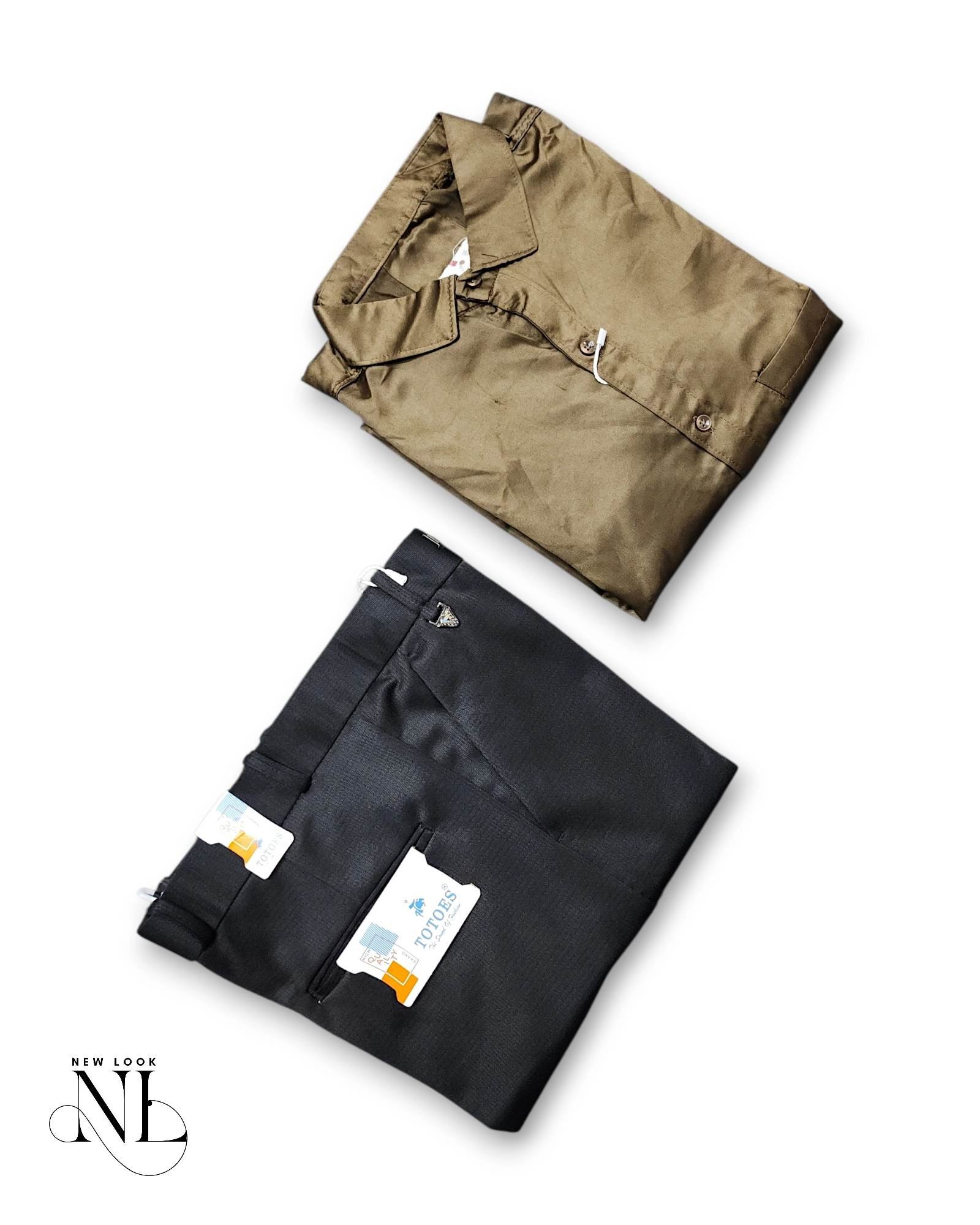 Olive Green Shirt & Black Pant Combo Unique Formal Set