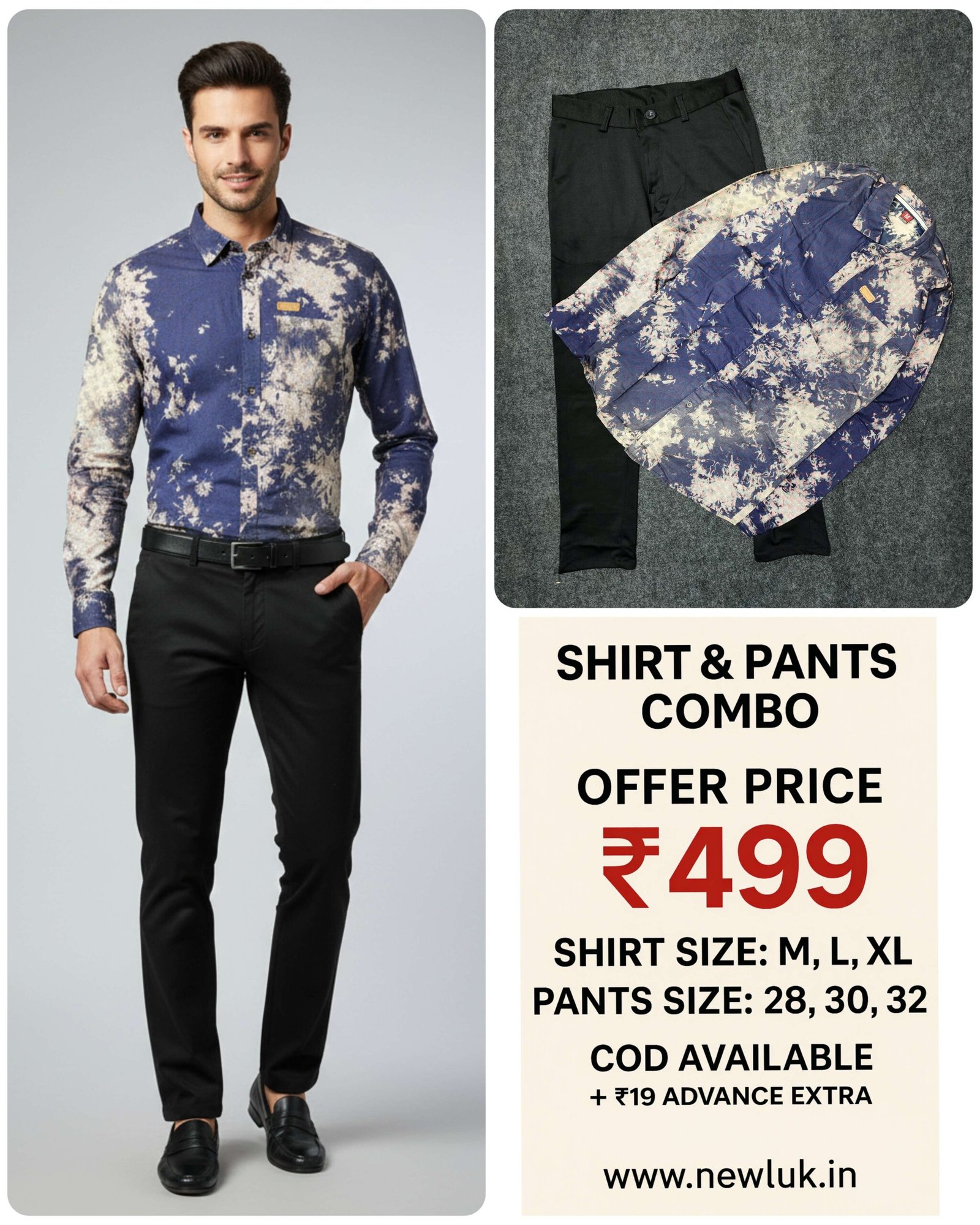 In the dynamic world of contemporary menswear, where self-expression meets sophistication, the blue printed shirt emerges as the ultimate canvas for personal style—offering the trustworthiness of blue with the personality of prints. We proudly present our Blue Printed Full Shirt & Black Formal Pant Combo, a sophisticated ensemble designed for the modern Indian man who believes that professionalism and personality aren’t mutually exclusive. This stylish pairing brings together the confidence of blueprints with the grounding elegance of black trousers, creating a look that’s both distinctive and appropriate for various settings. At just ₹499 for the complete set, we’re making designer-inspired printed fashion accessible to every style-conscious man ready to express his individuality.
