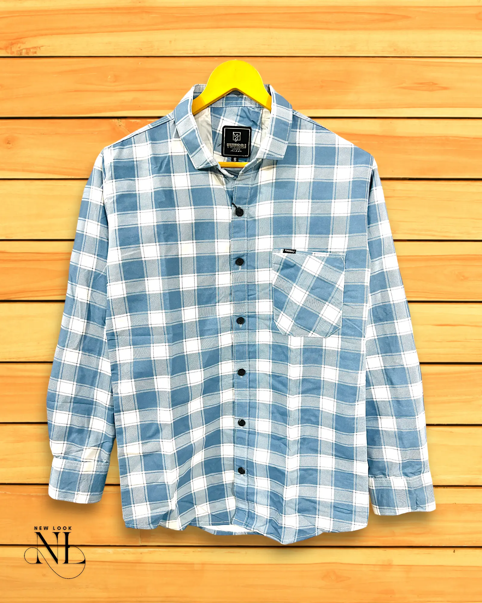 - “Blue check shirt men”