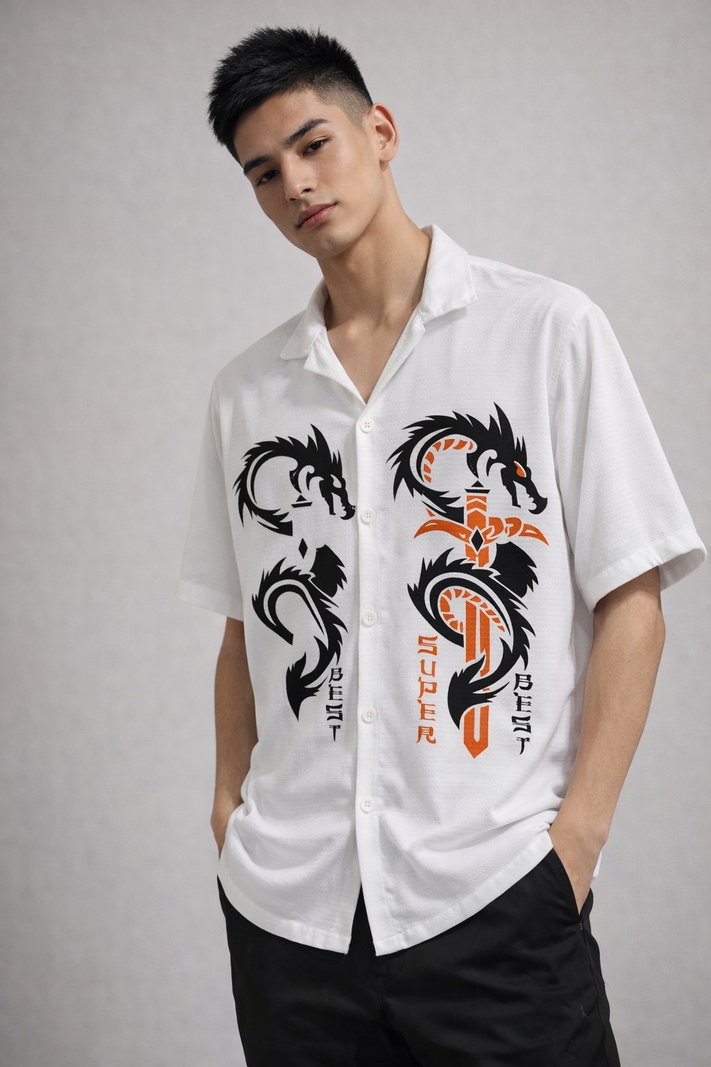Men’s fashion white print shirt oversized